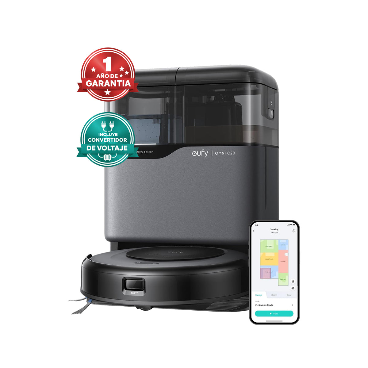- Estación todo en uno: el robot aspirador eufy Omni C20 ofrece limpieza totalmente automatizada con características como vaciado automático, lavado y secado. La estación seca el trapeador con aire a temperatura ambiente y tiene tanques de agua transparentes, lo que le permite controlar fácilmente los niveles de agua sin abrirlos. Este sistema manos libres garantiza un mantenimiento sin esfuerzo.