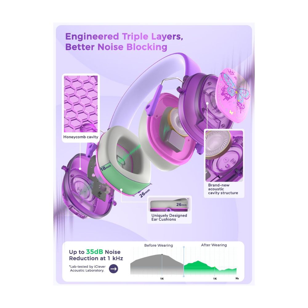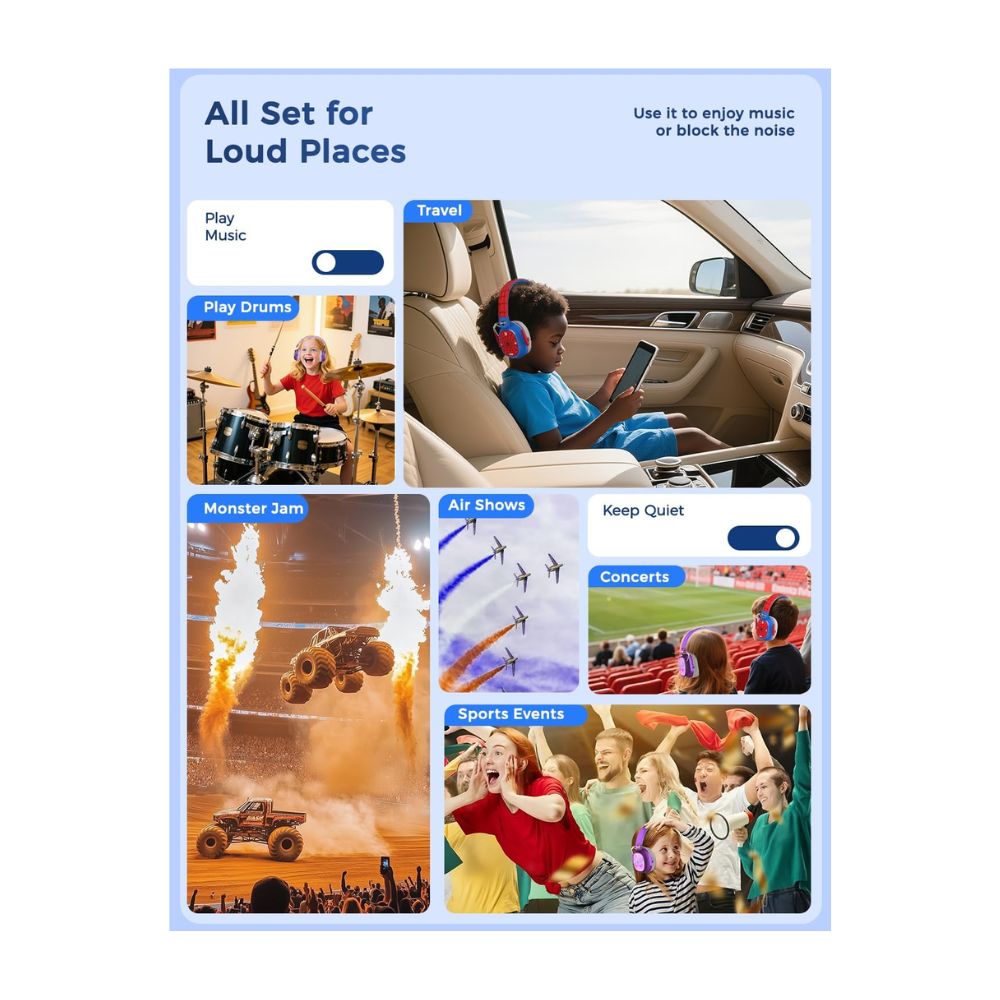 Diseñados para sensibilidades auditivas, estos auriculares ofrecen protección contra ruidos fuertes (hasta 35 dB de reducción) y volumen seguro limitado a 80 dBA. Ideales para niños y adultos con autismo, entornos ruidosos o necesidades de concentración.